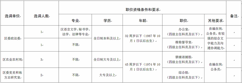 (一)選調(diào)單位、職位、選調(diào)人員的學(xué)歷、年齡等要求見(jiàn)《公開(kāi)選調(diào)公務(wù)員職位表》。