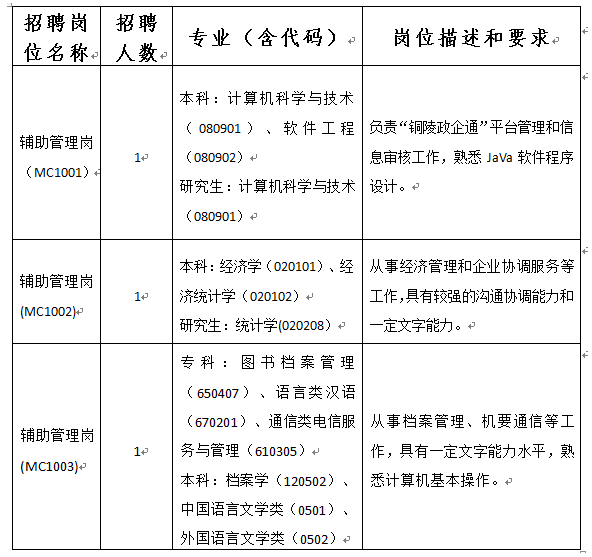 根據(jù)工作需要,銅陵市民營(yíng)經(jīng)濟(jì)促進(jìn)局?jǐn)M面向社會(huì)公開招聘編外聘用工作人員3名,現(xiàn)將有關(guān)事項(xiàng)公告如下: