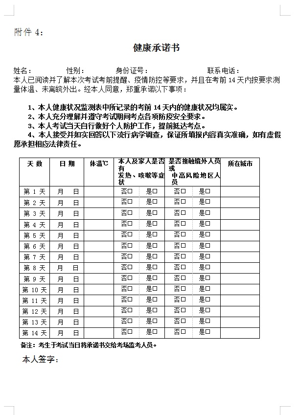 4、健康承諾書