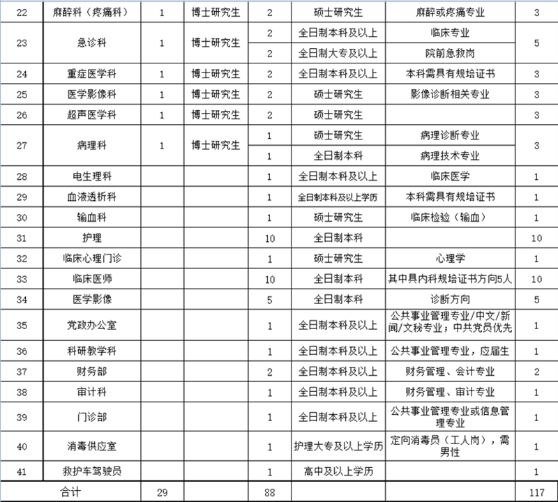 宣城市人民醫(yī)院2022年招聘計劃
