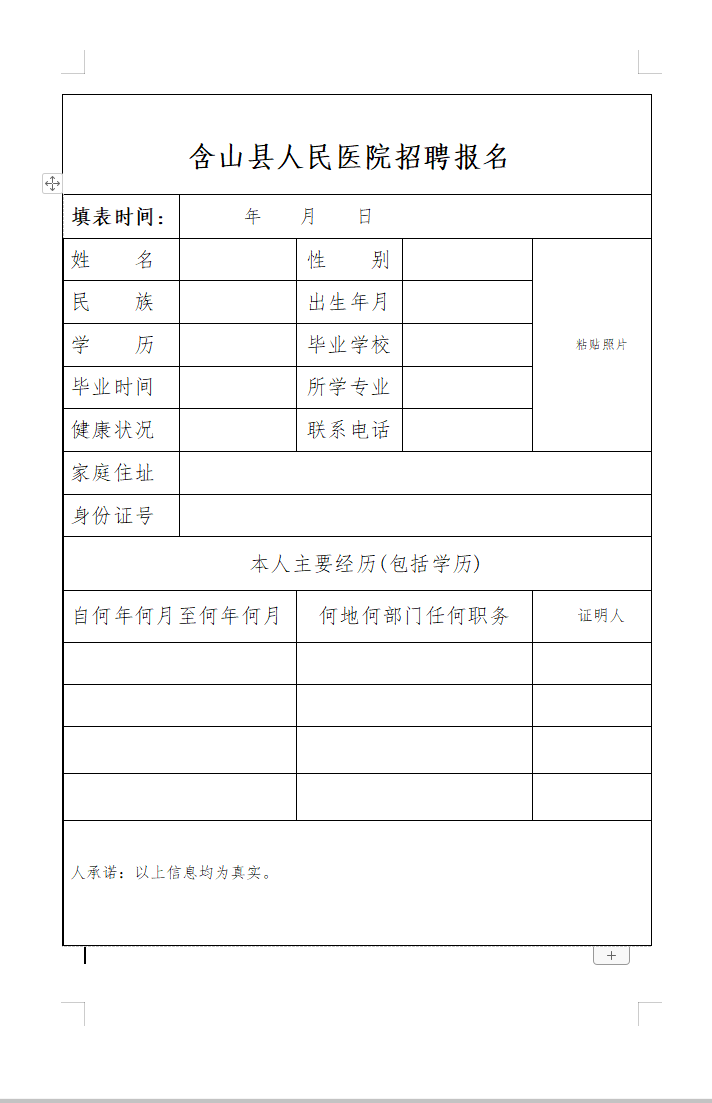 附件1:《含山縣人民醫(yī)院招聘報名表》