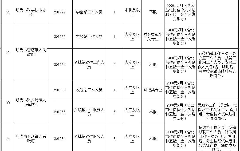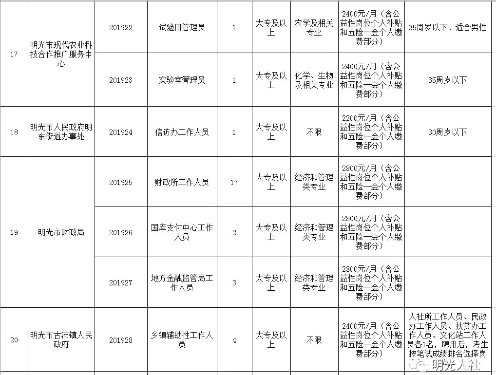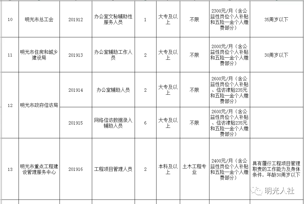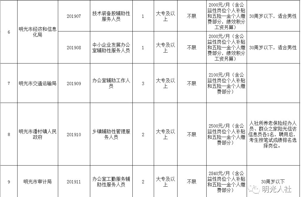 明光市2019年統(tǒng)一招聘公益性崗位人員公告