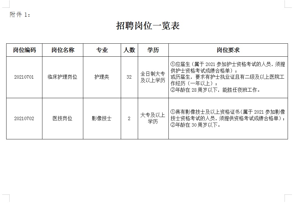 附件:1、招聘崗位一覽表