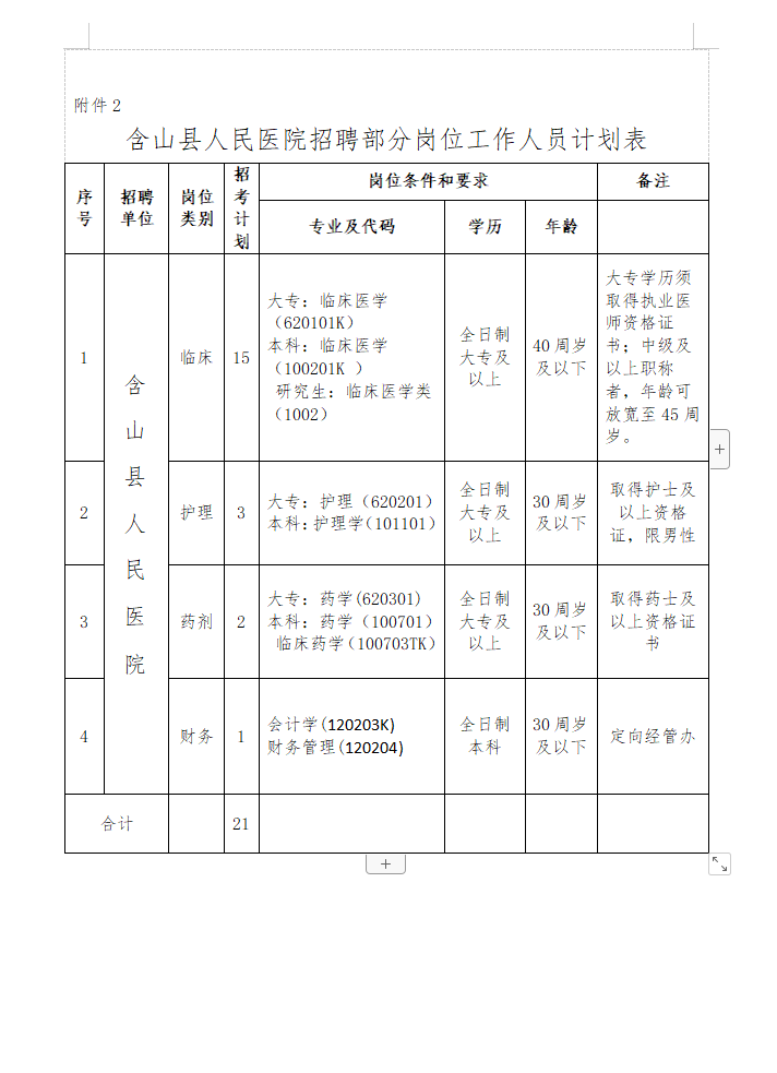 附件2:《含山縣人民醫(yī)院招聘部分崗位工作人員計劃表》